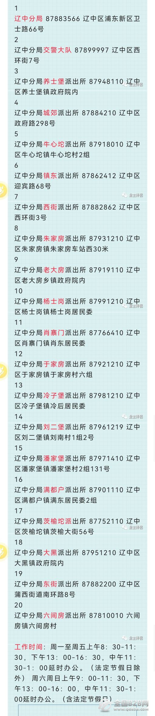 沈阳市辽中区各派出所电话和地址汇总表:沈阳市辽中区各派出所联系电话和地址汇总公开,你可以通过这些电话联系当地派出所。