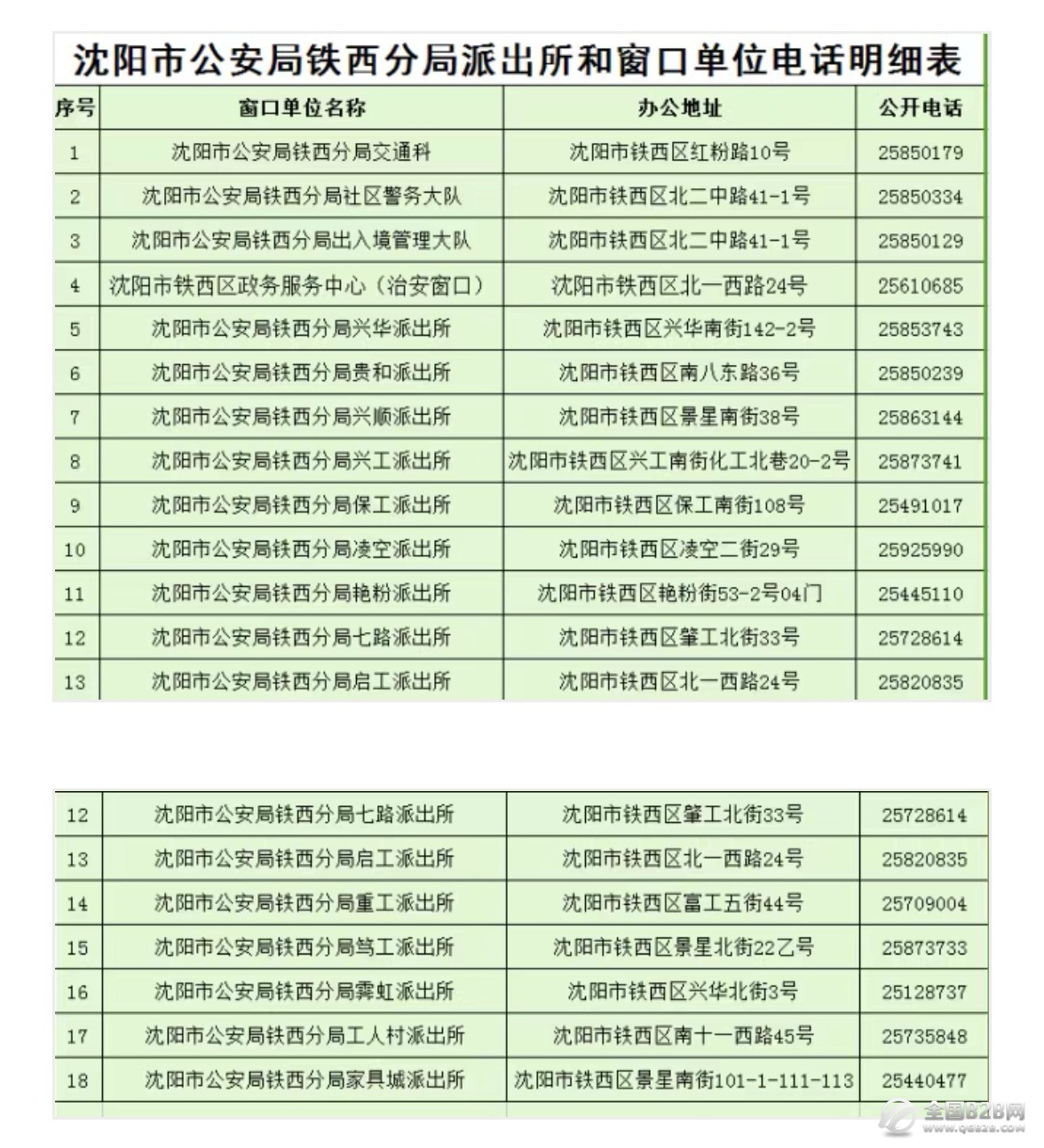 沈阳市铁西区各基层派出所办公地址和公开电话明细表
