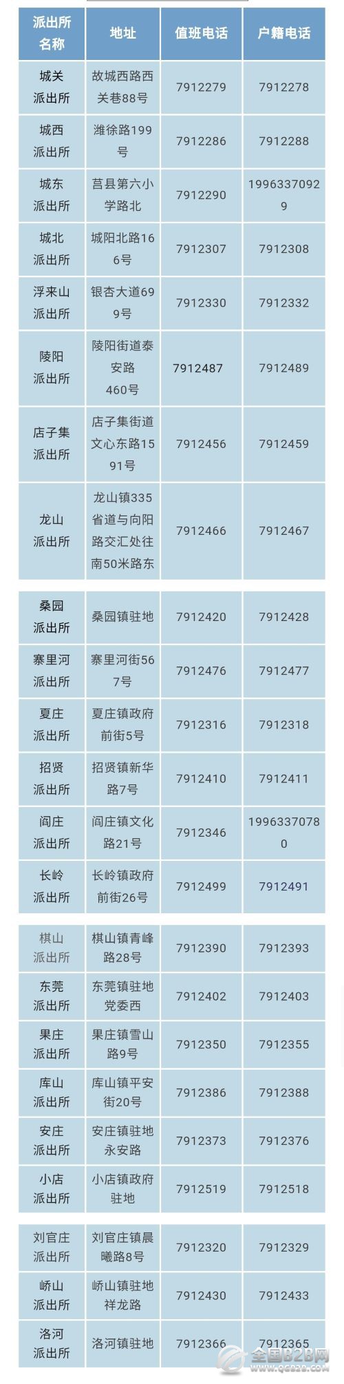 山东省莒县辖区派出所值班电话和地址、户籍电话大全表:山东省莒县辖区派出所值班电话和地址、户籍电话大全如下, 办事必备!请收藏,以备不时之需哟......