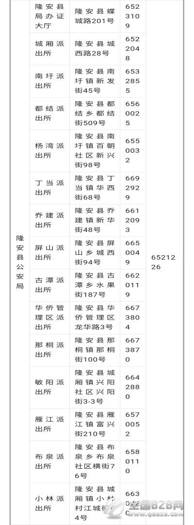 隆安县辖区派出所户籍窗口办公地址和办公电话汇总表:南宁市隆安县辖区派出所各户籍窗口办公地址、办公电话、监督举报电话大全! 办事必备!请收藏,以备不时之需哟......