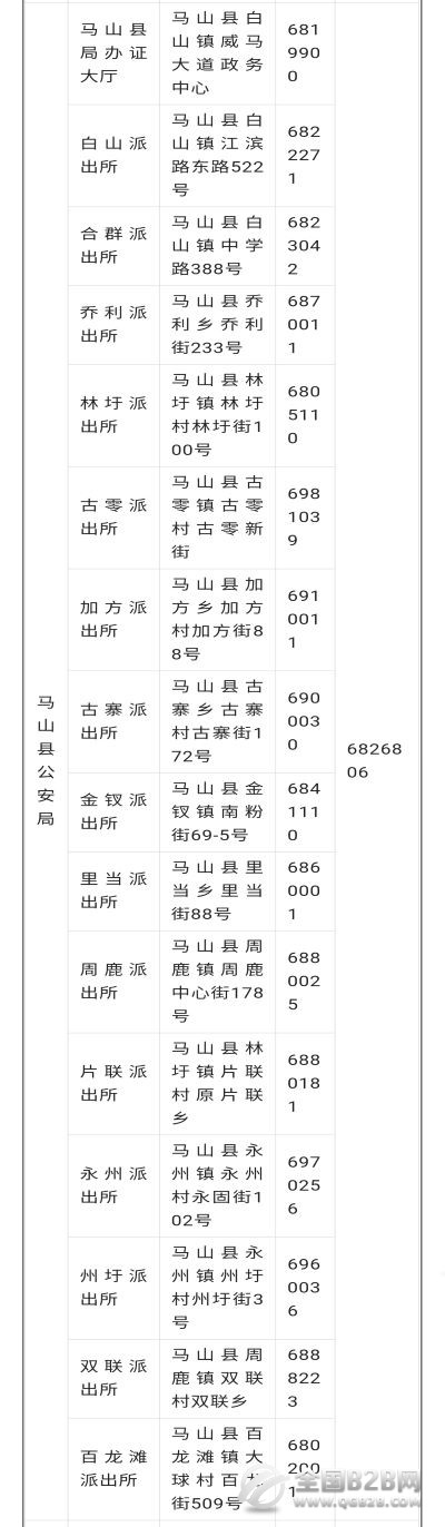 提示:关于马山县辖区派出所户籍窗口办公地址和办公电话汇总表的信息作出免责提示,本信息仅为提供便民服务目的而发布,相关信息来源于公开信息或第三方。本信息仅作参考,信息的准确性和完整性在此不作任何保证,也不保证所包含的信息和建议不会发生任何变更,我们仅对公开资料中的内容做原文提取或者整理转载。虽然已力求信息的客观完整,但随着时间与其它情况发生,难免信息出现差错或者变更。如果出现差错或者侵犯了您的权利,请通知本网站客服,我们将及时更正或者删除。谢谢。