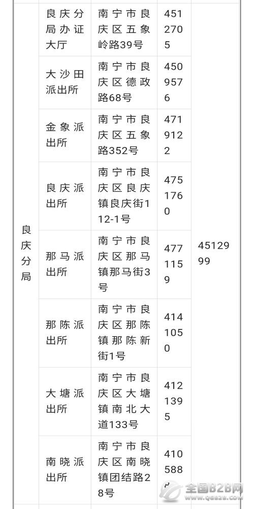南宁市良庆区辖区各派出所户籍窗口办公地址和办公电话大全表:南宁便民信息,广西南宁市良庆区辖区派出所各户籍窗口办公地址和办公电话、监督举报电话大全! 办事必备!请收藏,以备不时之需哟......