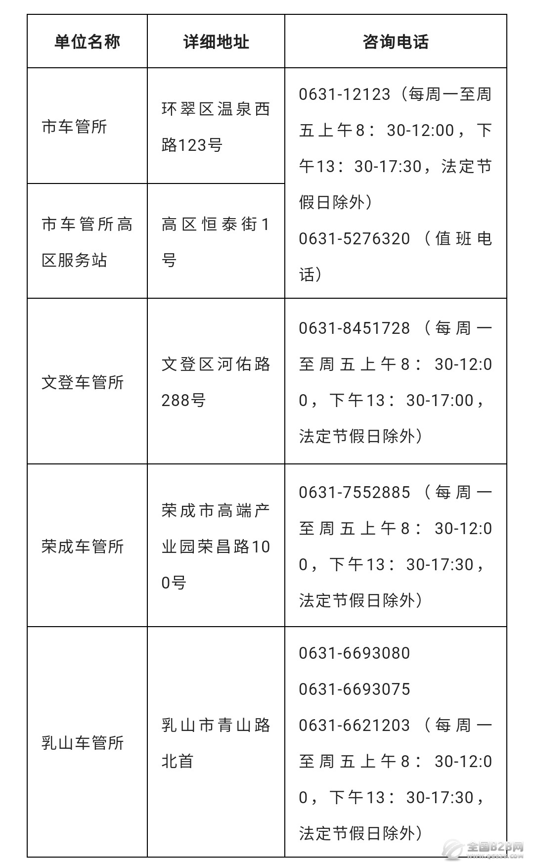 威海市辖区车管所服务窗口地址及咨询电话汇总表:威海市辖区车管所服务窗口地址及咨询电话公示, 办事必备!请收藏,以备不时之需哟......