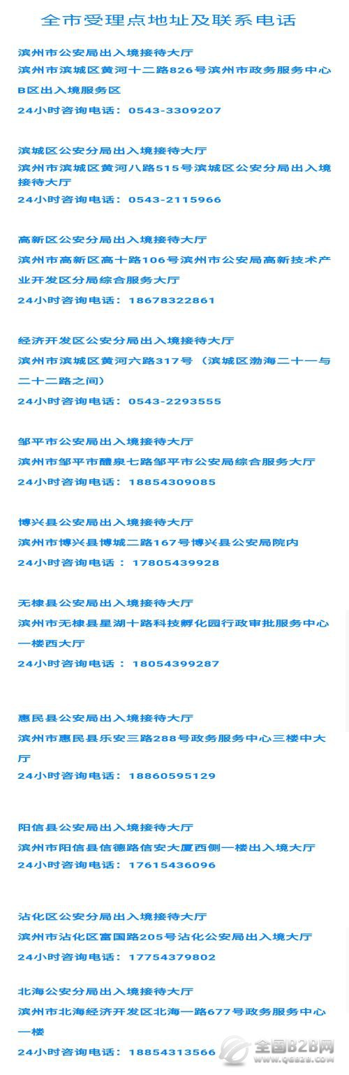 山东滨州市辖区各出入境受理点地址及联系电话大全表:山东滨州市辖区各出入境受理点地址及联系电话, 办事必备!请收藏,以备不时之需哟......