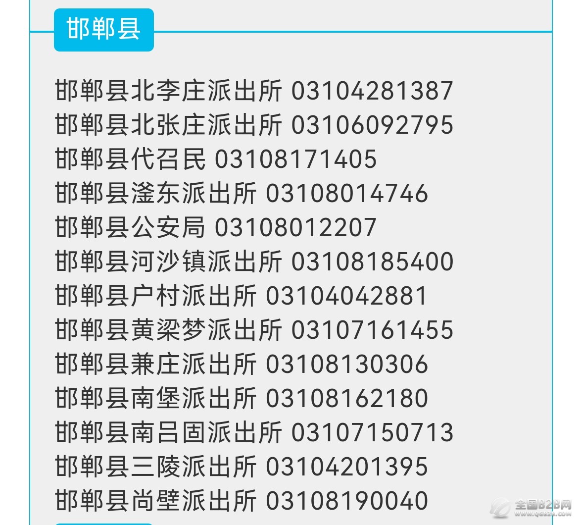 便民电话黄页:邯郸市邯郸县各派出所联系电话号码一览表。