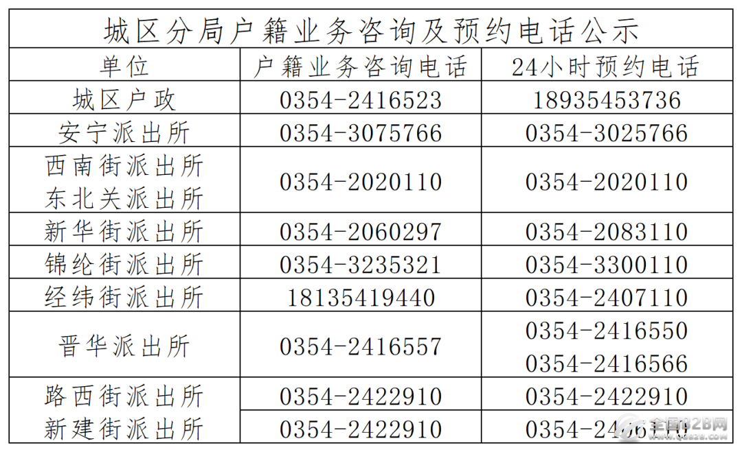 晋中市城区分局户政中队及各派出所户籍业务办理电话公示表:结合正在开展的“我为群众办实事”实践活动,重点围绕解决民生关切、群众身边的急难事等问题,倾听群众声音,回应群众难题,从身边每一件小事做起,全力提升服务水平,积极推动“放管服”便民利民措施落地见效,推动队伍教育整顿工作走深走实。晋中市城区户政窗口大力推行错时、延时、预约服务,开通便民“绿色通道”,现将晋中市城区分局户政中队及各派出所户籍业务办理电话公布如下: