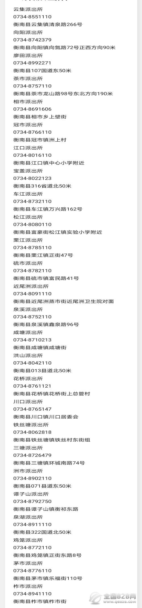 衡南县辖区各派出所值班电话是多少,办公地点在哪里?衡南县辖区各个派出所值班电话和办公地点汇总大全如下?