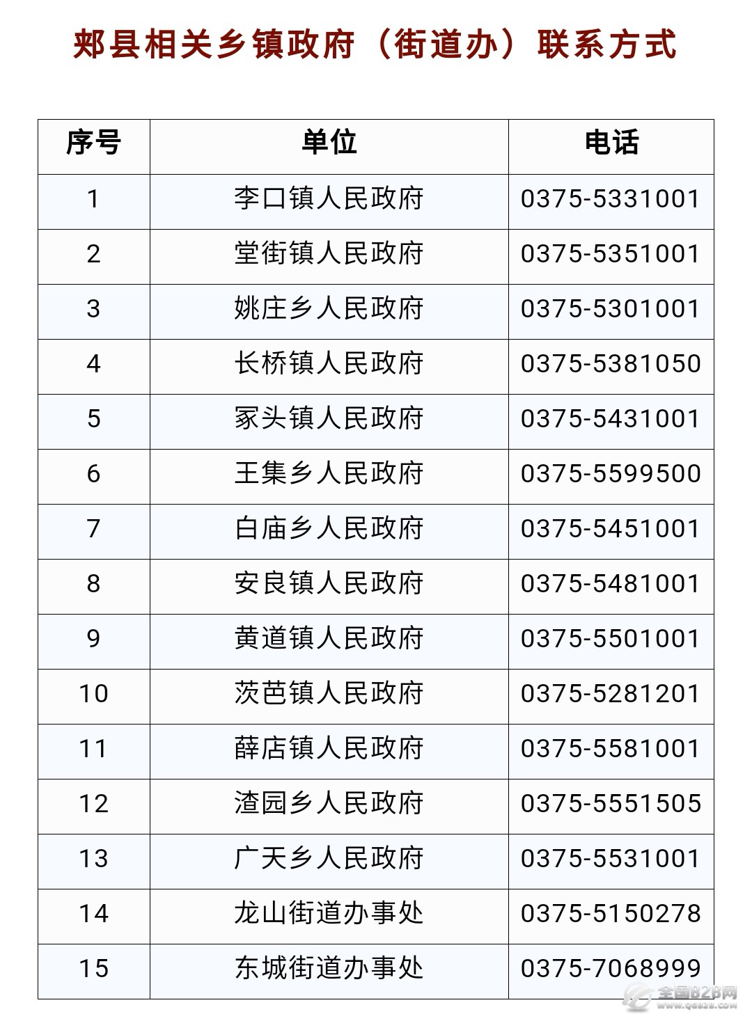 说明:关于郏县乡镇政府(街道办事处)联系电话汇总表的信息作出免责说明,本信息仅为提供便民服务目的而发布,相关信息来源于郏县主管机构之公开内容。本信息仅作参考,信息的准确性和完整性在此不作任何保证,也不保证所包含的信息和建议不会发生任何变更,我们仅对公开资料中的内容做原文提取或者整理转载。虽然已力求信息的客观完整,但随着时间与其它情况发生,难免信息出现差错或者变更。如果出现差错或者侵犯了您的权利,请通知本网站客服,我们将及时更正或者删除。谢谢。