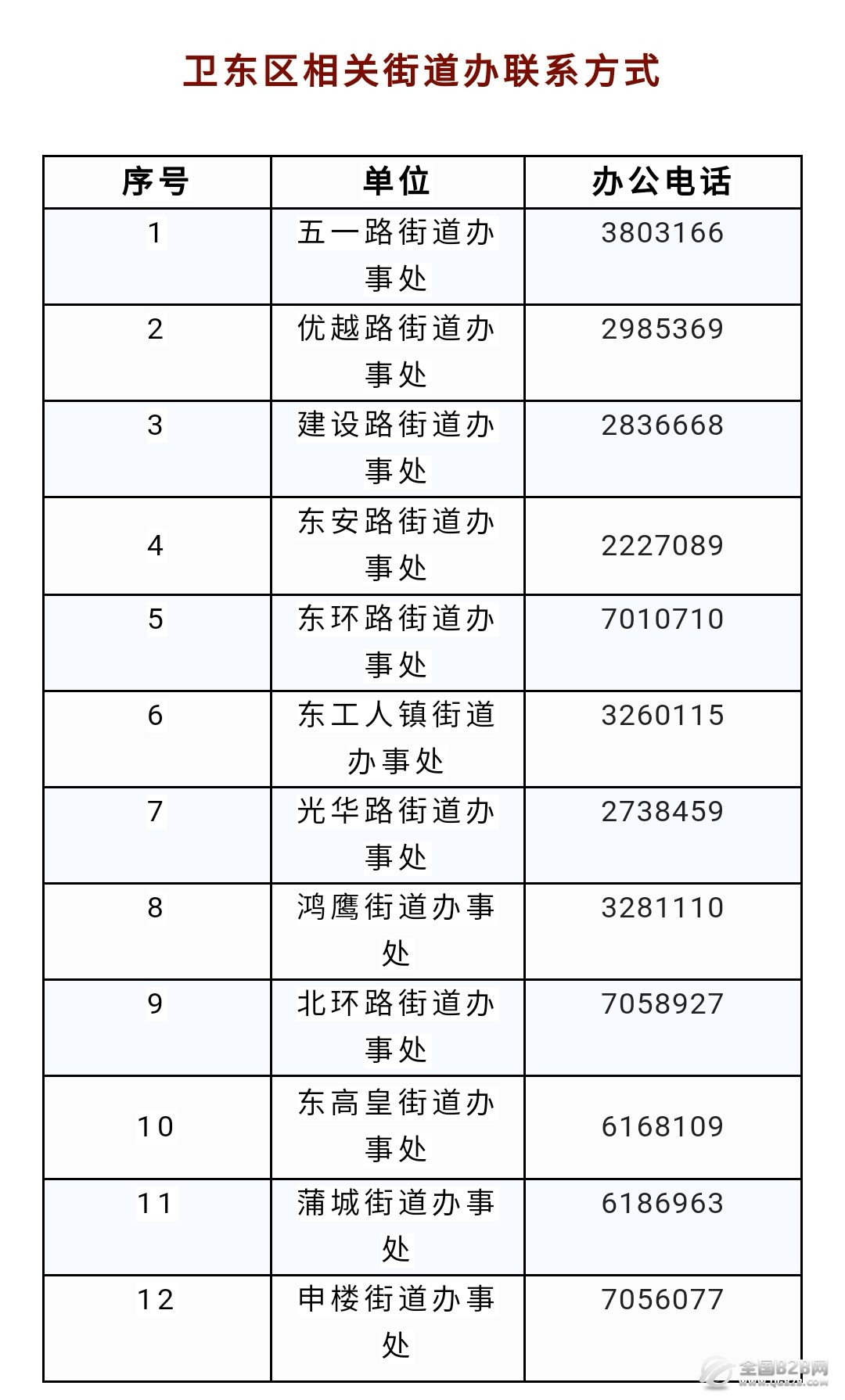 便民信息黄页:平顶山市卫东区各街道办事处对外公开联系电话汇总表。