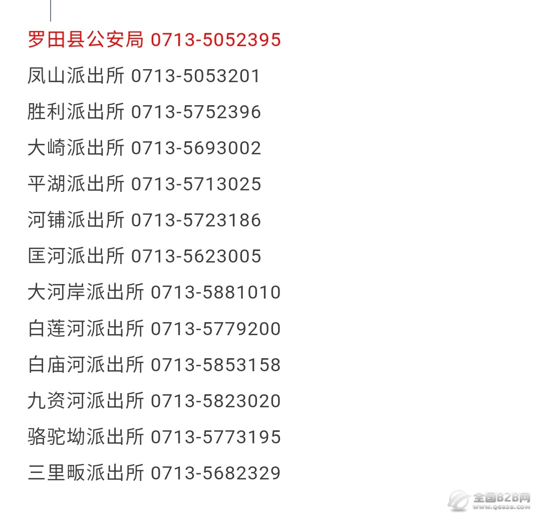 提示:关于罗田县各派出所联系电话号码汇总表的信息作出免责提示,本信息仅为提供便民服务目的而发布,相关信息来源于罗田县主管机构之公开内容。本信息仅作参考,信息的准确性和完整性在此不作任何保证,也不保证所包含的信息和建议不会发生任何变更,我们仅对公开资料中的内容做原文提取或者整理转载。虽然已力求信息的客观完整,但随着时间与其它情况发生,难免信息出现差错或者变更。如果出现差错或者侵犯了您的权利,请通知本网站客服,我们将及时更正或者删除。谢谢。