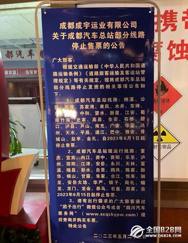 近日,成都成宇运业有限公司发布《关于成都汽车总站部分线路停止售票的公告》,自2023年6月1日起,从成都汽车总站开往各地的客运线路,将陆续停止售票。相应的车次也会依据相关部门安排和经营者意愿转移到成都东站汽车客运站和位于琉璃厂的城东客运中心。