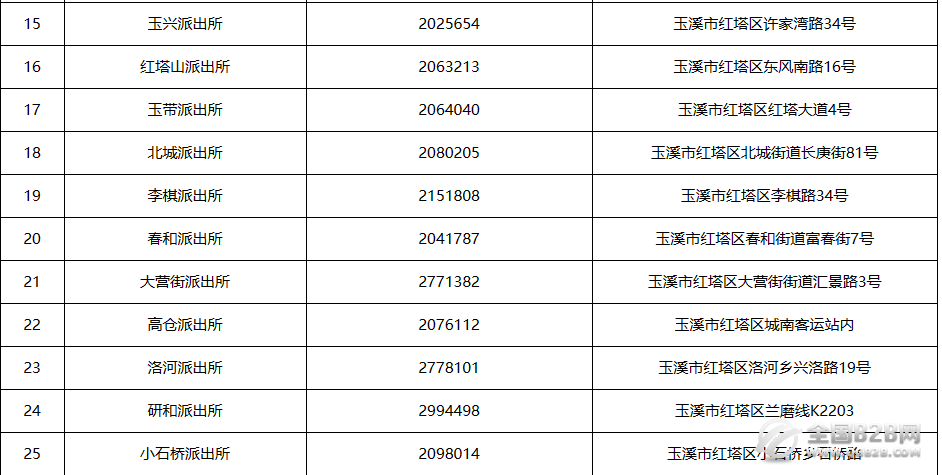 玉溪市红塔区各派出所办公电话和办公地址汇总大全如下: