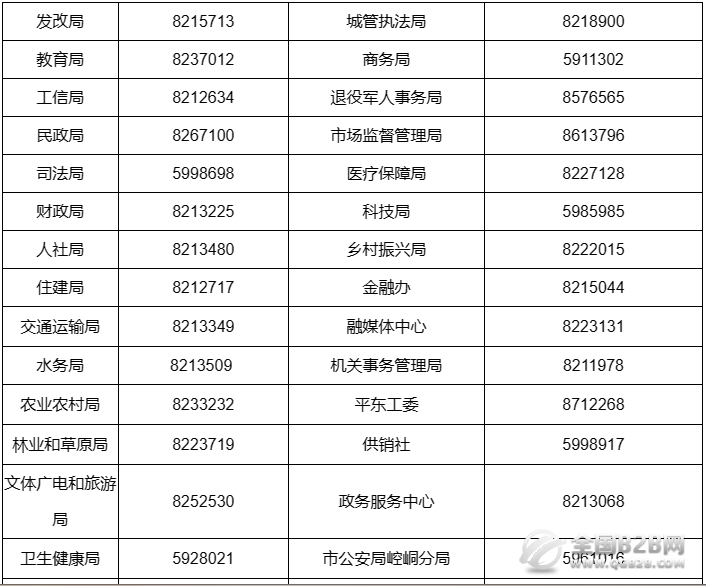 平凉市崆峒区政府各职能部门单位联系电话是多少: