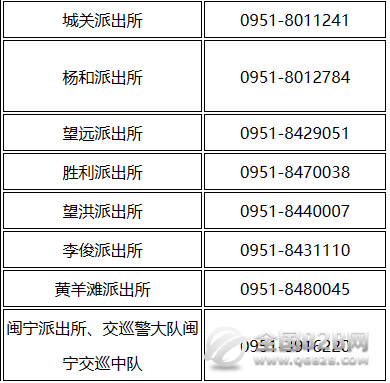 说明:关于永宁县各派出所联系电话号码汇总表的信息作出免责说明,本信息仅为提供便民服务目的而发布,相关信息来源于永宁县主管机构之公开内容。本信息仅作参考,信息的准确性和完整性在此不作任何保证,也不保证所包含的信息和建议不会发生任何变更,我们仅对公开资料中的内容做原文提取或者整理转载。虽然已力求信息的客观完整,但随着时间与其它情况发生,难免信息出现差错或者变更。如果出现差错或者侵犯了您的权利,请通知本网站客服,我们将及时更正或者删除。谢谢。