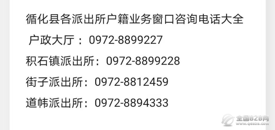 循化县各派出所户籍业务窗口预约咨询电话号码大全: