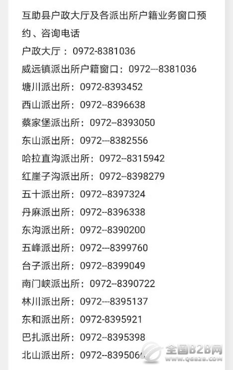 互助县户政大厅及各派出所户籍业务窗口预约、咨询电话大全: