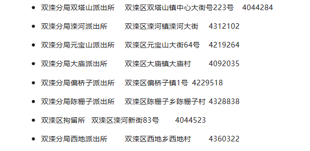 承德市双滦区各辖区派出所电话号码和办公地址汇总表。承德市双滦区各派出所电话号码和办公地址信息汇总如下: