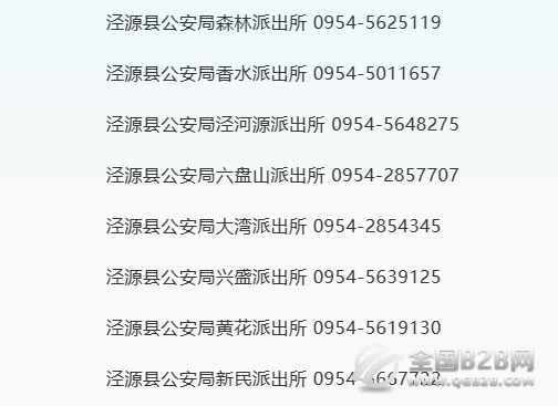 固原市泾源县各个派出所联系电话号码汇总表。固原市泾源县各派出所联系电话号码是多少:
