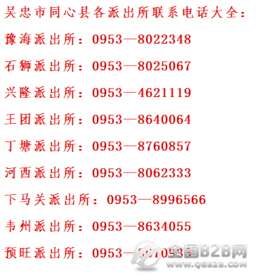 吴忠市同心县各辖区派出所联系电话号码汇总表。吴忠市同心县各派出所联系电话号码汇总如下: