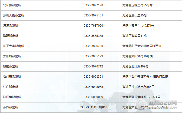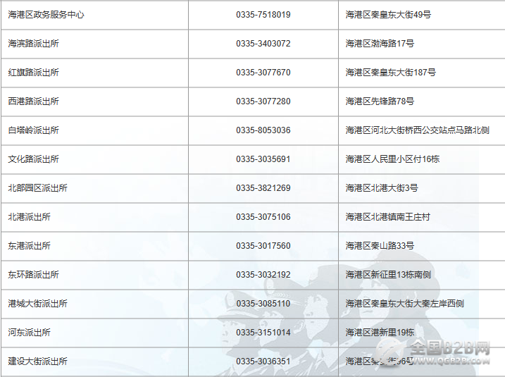 秦皇岛市海港区各个派出所户政咨询电话号码汇总表。秦皇岛市海港区各派出所户政咨询电话号码大全: