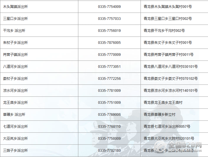 声明:关于青龙县各派出所户政咨询电话号码汇总表的信息作出免责声明,本信息发布的目的仅为向公众提供更多的便民利民服务,是建立在公共服务信息基础上的公益信息传播,其信息来源于青龙县当地主管机构网站的公开内容。信息不排除因随着时间或者相关情况发生原因而发生变化变更,所以本信息仅作参考。