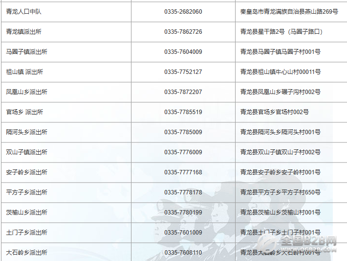 青龙县各个派出所户政咨询电话号码汇总表。秦皇岛市青龙满族自治县各派出所户政咨询电话号码汇总如下: