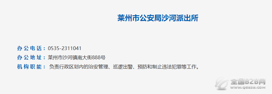 说明:关于莱州市沙河派出所地址及电话的信息仅供参考。