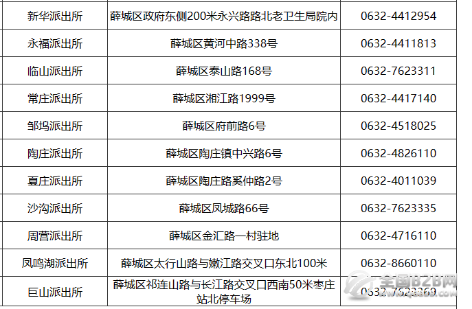 山东枣庄市薛城区各派出所联系电话及地址信息汇总大全: