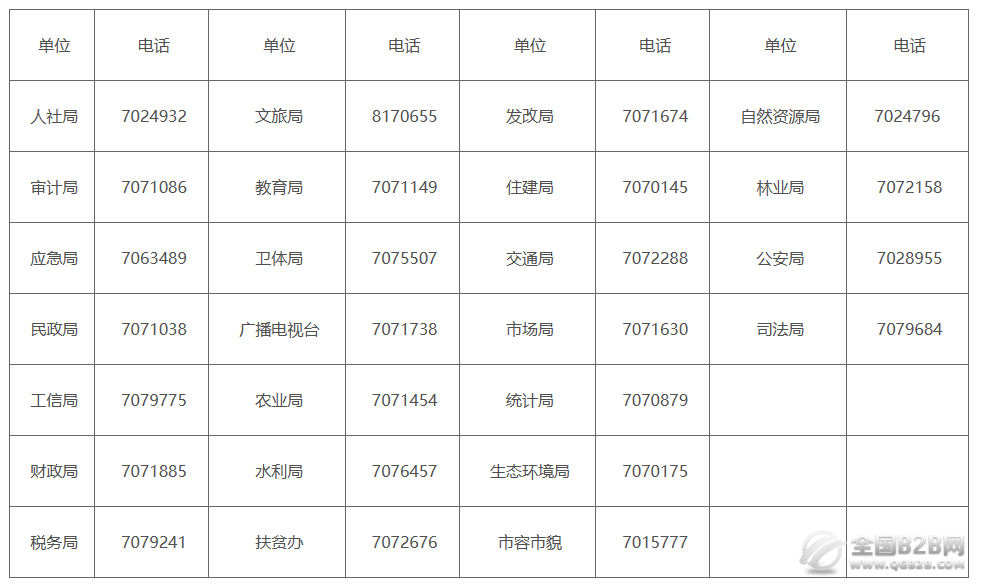 山阴县政府各办事服务职能部门联系电话大全: