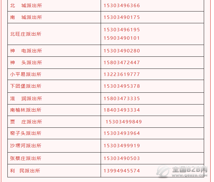 说明:关于朔州市朔城区各个派出所户籍户政咨询服务电话号码汇总的信息作出免责声明:关于此信息作出免责声明,此信息图文仅供参考,小编不承担任何法律责任。此信息来源于有关机构的公开内容,在此经过整理并转载,唯一的目的是通过互联网传播便民惠民信息。由于时间等原因,难免使信息发生变更,此信息如有侵权,或者差错,请联系删除,直接联系秋果黄页网客服电话(187-8199-3958微信同号),一定会及时删除和修正。