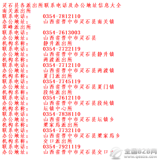 灵石县辖区派出所联系电话及办公地址信息