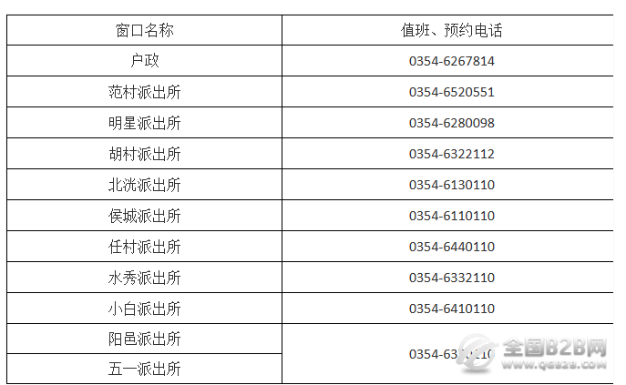 晋中市太谷区各派出所户籍咨询预约电话号码