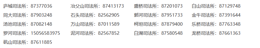 庐江县辖区司法所联系电话号码名录大全: