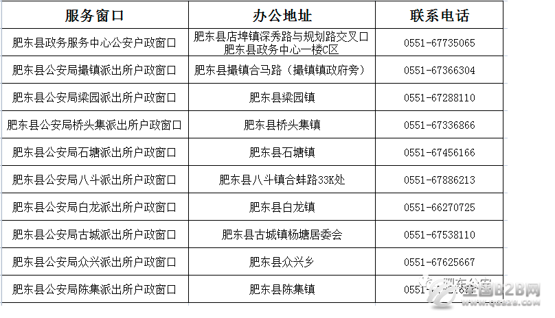 合肥肥东县辖区派出所户籍咨询预约服务电话号码