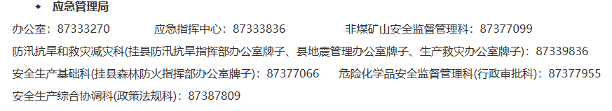 合肥庐江县应急管理局各部门联系电话号码大全: