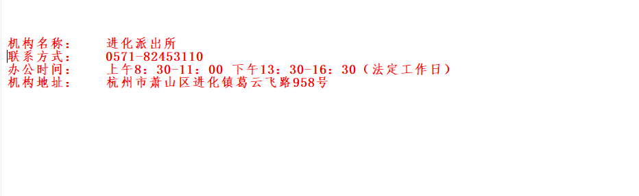 便民信息:杭州萧山区进化派出所联系电话及地址: