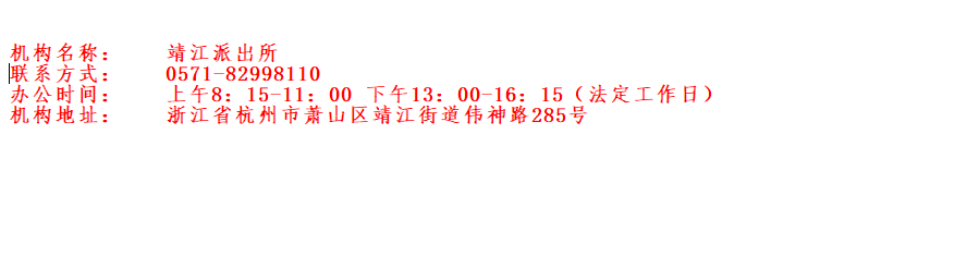 便民信息:杭州萧山区靖江派出所联系电话及地址: