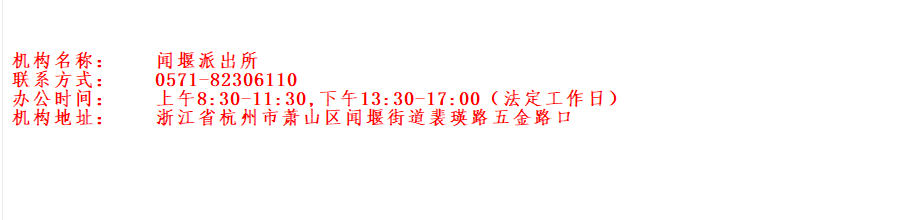 便民信息:杭州萧山区闻堰派出所联系电话和地址: