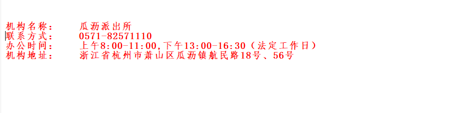 便民信息-杭州萧山区瓜沥派出所联系电话和地址: