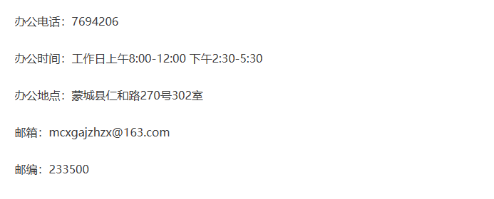 便民信息公开:蒙城县出入境管理大队办公电话及地址: