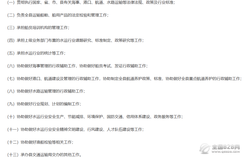 蒙城县交通运输局地方海事(港航)管理服务中心主要职责: