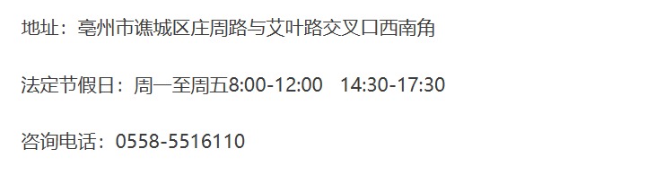 毫州市谯城区园区派出所户政窗口咨询电话及地址: