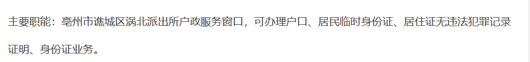 毫州市谯城区涡北派出所户政窗口联系电话及地址: