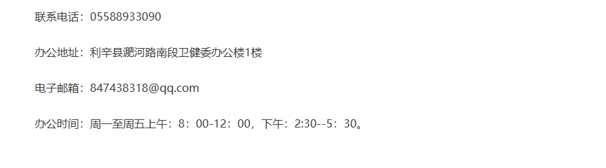 利辛县卫生计生监督所简介及联系电话地址: