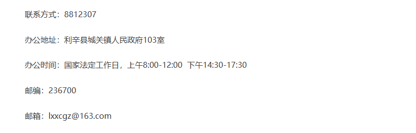 便民信息公开:利辛县城关镇财政所联系电话: