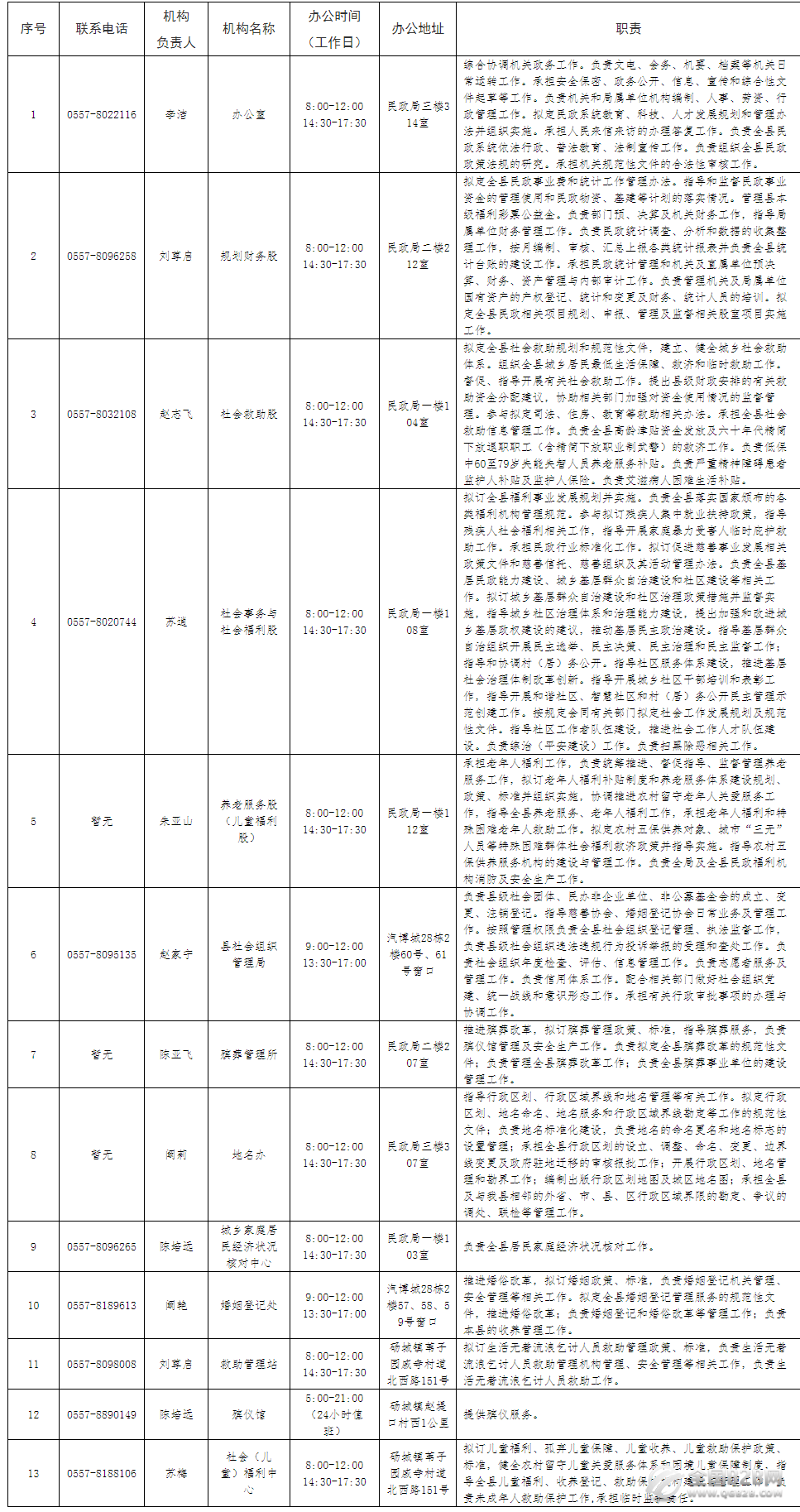 便民信息公开:砀山县民政局机构信息和联系方式(电话地址):
