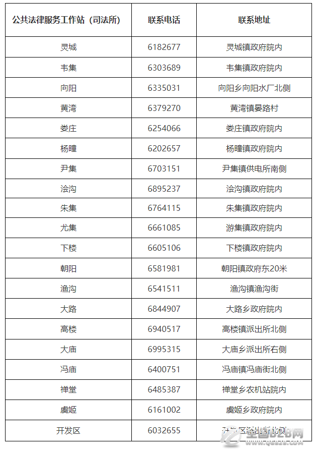 灵璧县辖区公共法律服务工作站(司法所)联系电话号码大全: