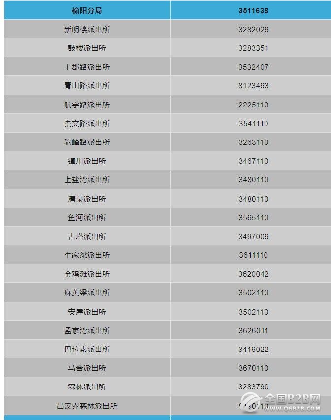 便民通讯录:榆林市榆阳区各派出所联系电话号码大全。