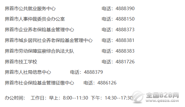 便民信息:界首市人力资源和社会保障局各局属单位办公电话大全。
