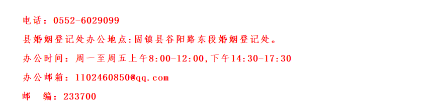 便民信息:固镇县婚姻登记处联系电话及地址。